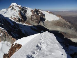This is a relatively slight frequented summit, since its normal ascension way is the most difficult of Bolivia; it constitutes a very beautiful mountain journey, however it is reserved only for the experienced and astute mountaineers. The whole route is technical and committed. The edge that takes to the summit is very hard and exposed.