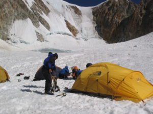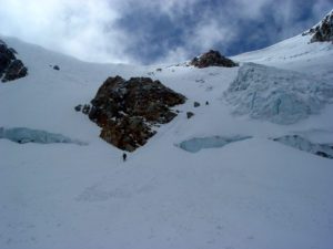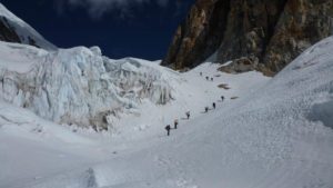Day 3.- Today we will reach the high camp, at 5,600m. The route begins over a moraine and other rocky areas until we reach the start of the glacier. The camp site is a short distance along the length of the glaciar, (approx 5 hours in total).